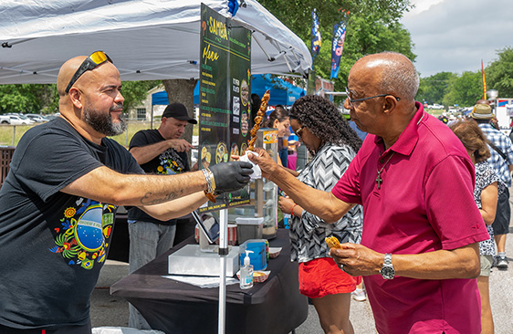 As you make your way through both sweet and savory vendors, you’ll vote for your pfavorite bites. Your passport includes a voting slip—just turn it in at the front of the stage before the voting window closes at 3:30 p.m.